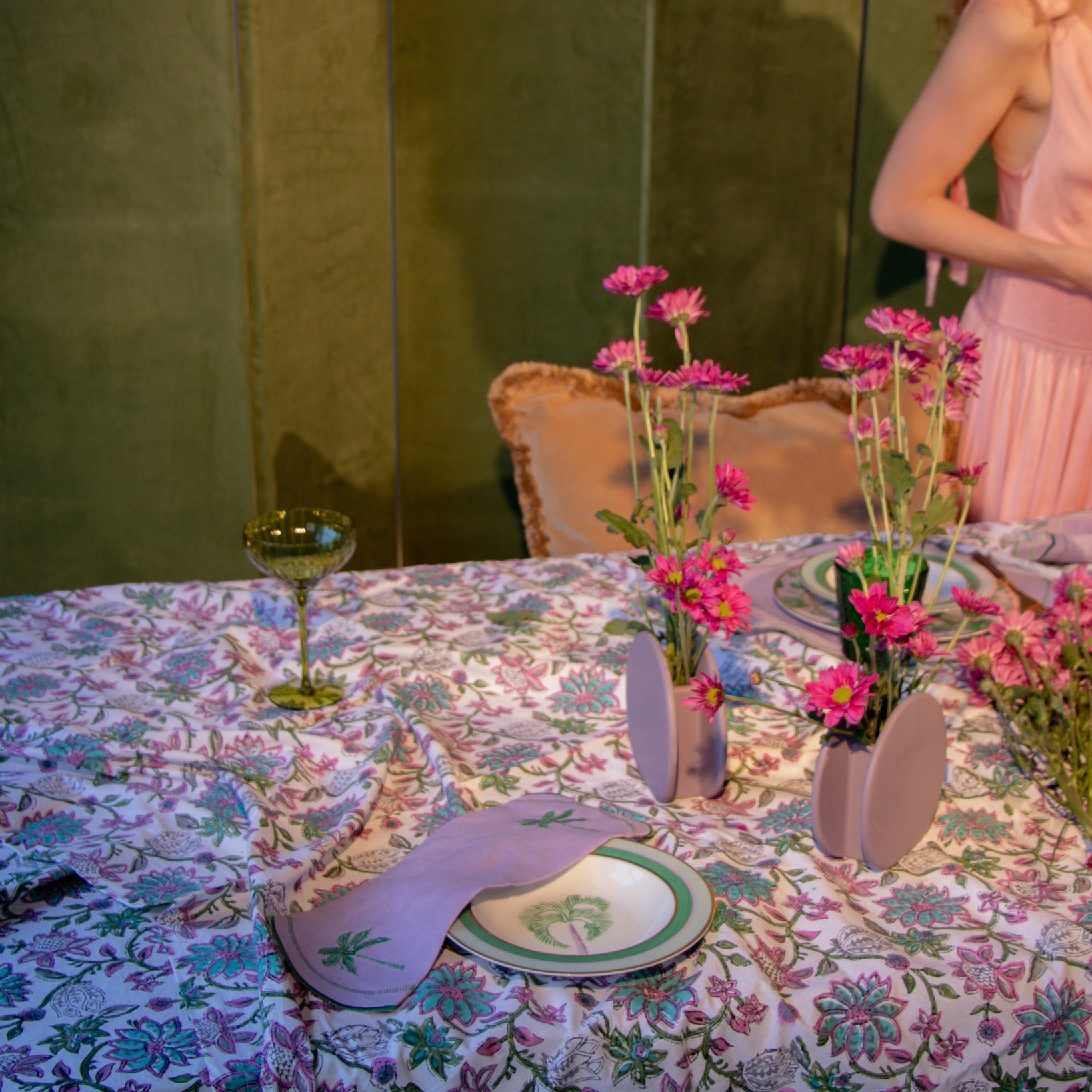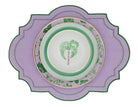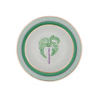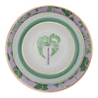 A standout piece from our Vintage Palm Collection, this bowl boasts a hand-drawn verdant palm tree and lilac stem intricately illustrated as if swaying with the breeze. Gold outer rim complemented by inner rings of pistachio, lilac, and dark green encircle the bowl edge. The contrast captures the fusion of earth and art, nature and nurture. Whether presenting a soup, pasta, or a light course, it promises to be a cherished addition to your table.