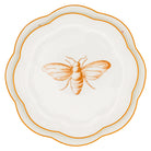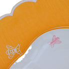 Effortlessly captures the delicate beauty of nature's most diligent workers - a quartet of finely sketched bumblebees embarks on their silent journey in honey gold and pink, hand drawn as if they are about to buzz right off the plate. The aerial ballet is accentuated by the plate's honey-gold rim, a nod to nature's golden nectar. Whether it's a sunlit breakfast or a candlelit dinner, the plate brings a touch of summer's fleeting beauty and the tireless dance of the bumblebees.