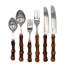 Each piece is thoughtfully designed, stainless steel cutlery handmade with a faux bamboo handle, which sports a deep, earthy hue reminiscent of "burnt" tones. Comprising 6 essential pieces, this set seamlessly pairs well with many Ro'Table collections, particularly with Shimla Social.