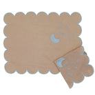 Be enchanted by our Moonbeam Placemat. Crafted in a soft nude hue and adorned with blue moonbeam embroidery, this placemat boasts a crescent moon and stars motif to sprinkle magic onto your dining experience. Pair it effortlessly with our coordinating tableware to create a captivating setting that transports you to a dreamy, starlit night