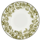 Part of our Shimla Social Collection, the Pembroke Safari Dinner Plate captures the whimsy of a dense jungle, intricately painted in a safari green with branching tendrils, lush leaves, and vibrant blooms. The enchanting foliage is displayed around the plate's border, creating a decorative frame and white center. If you look closely enough, you may even be able to spot a monkey hanging off a bough. Can be matched with Shimla Social coordinating pieces to create a complete place setting.