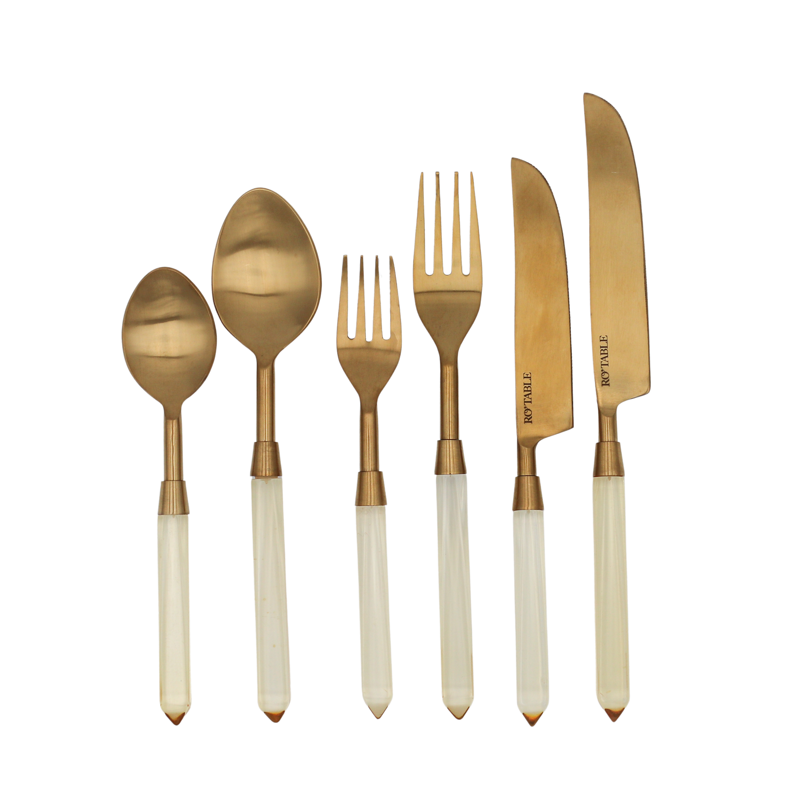 To complete the tableau add the shimmering gold-toned flatware with luminous handles.