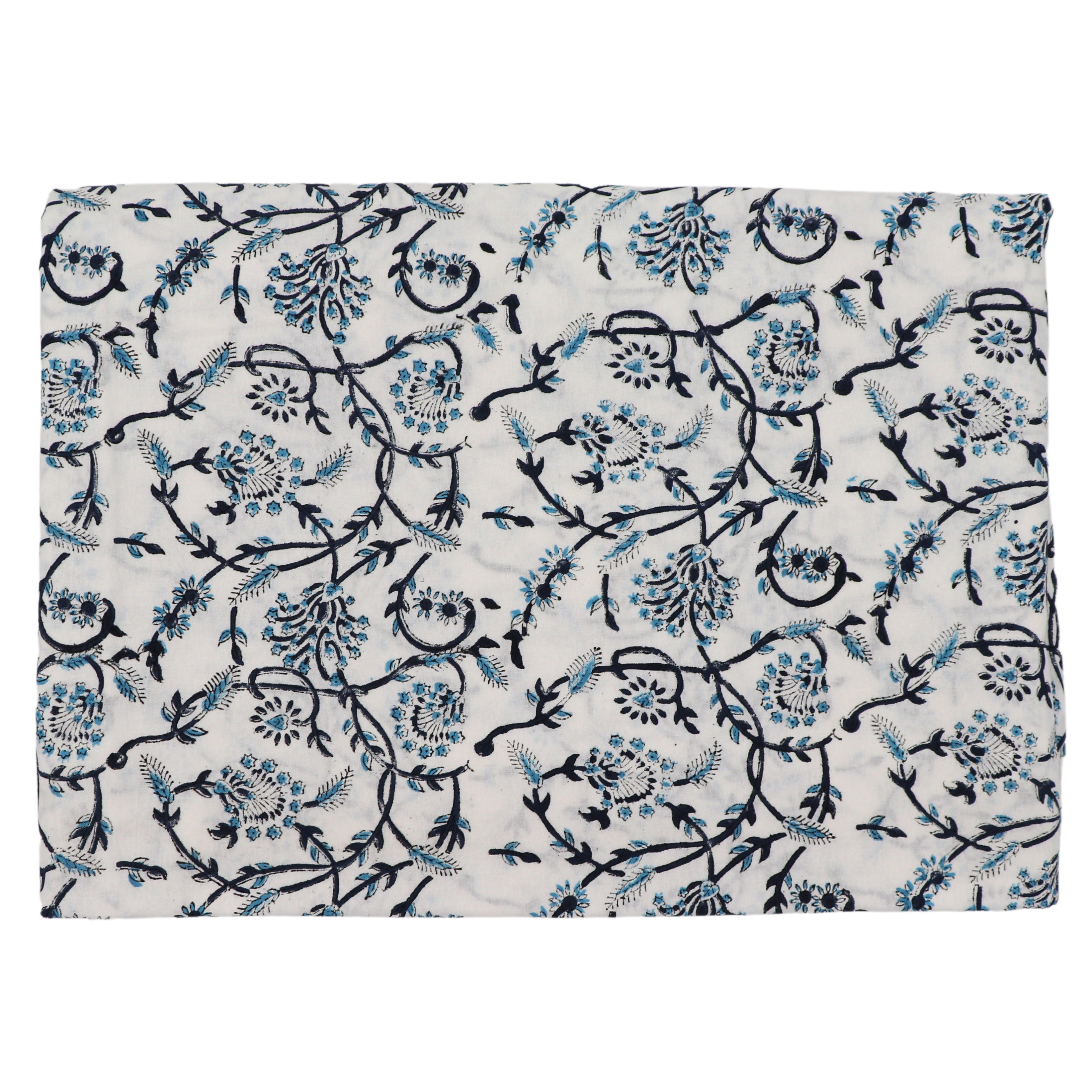 White Cotton with Shades of Blue Hand-Printed Design