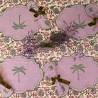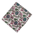 White Cotton with Lilac, Teal Green, and Grey Hand-Printed Design