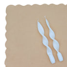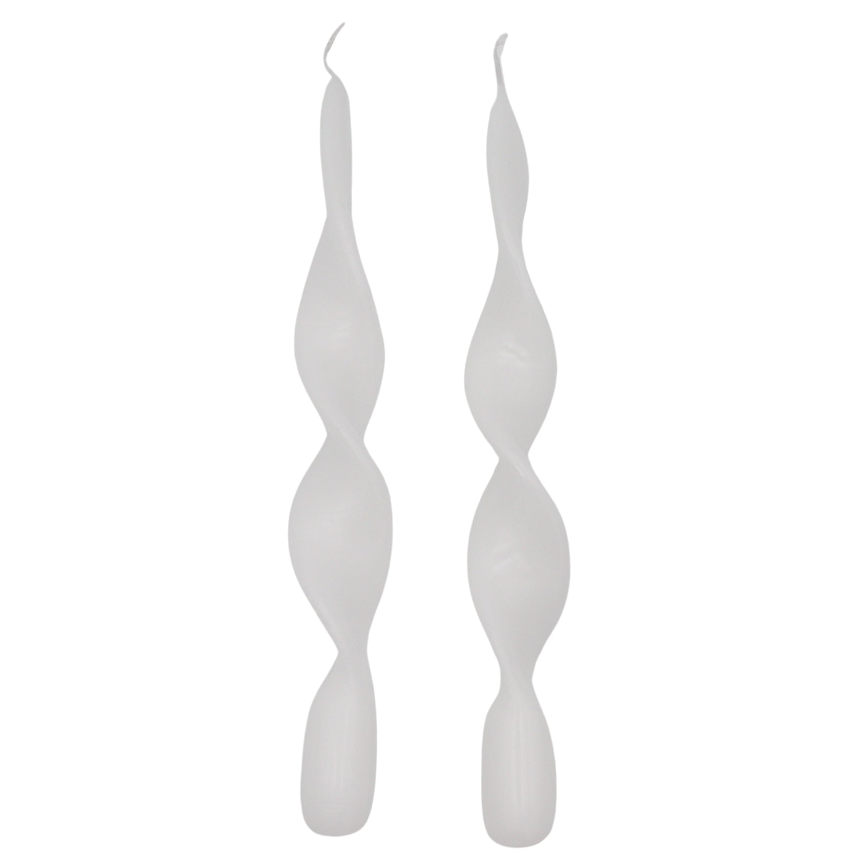 The pure white spiral taper candle conjures visions of soft, billowing cotton clouds in the sky.