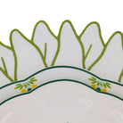 White Plate with Green and Yellow Design and Green Hand-Painted Rim