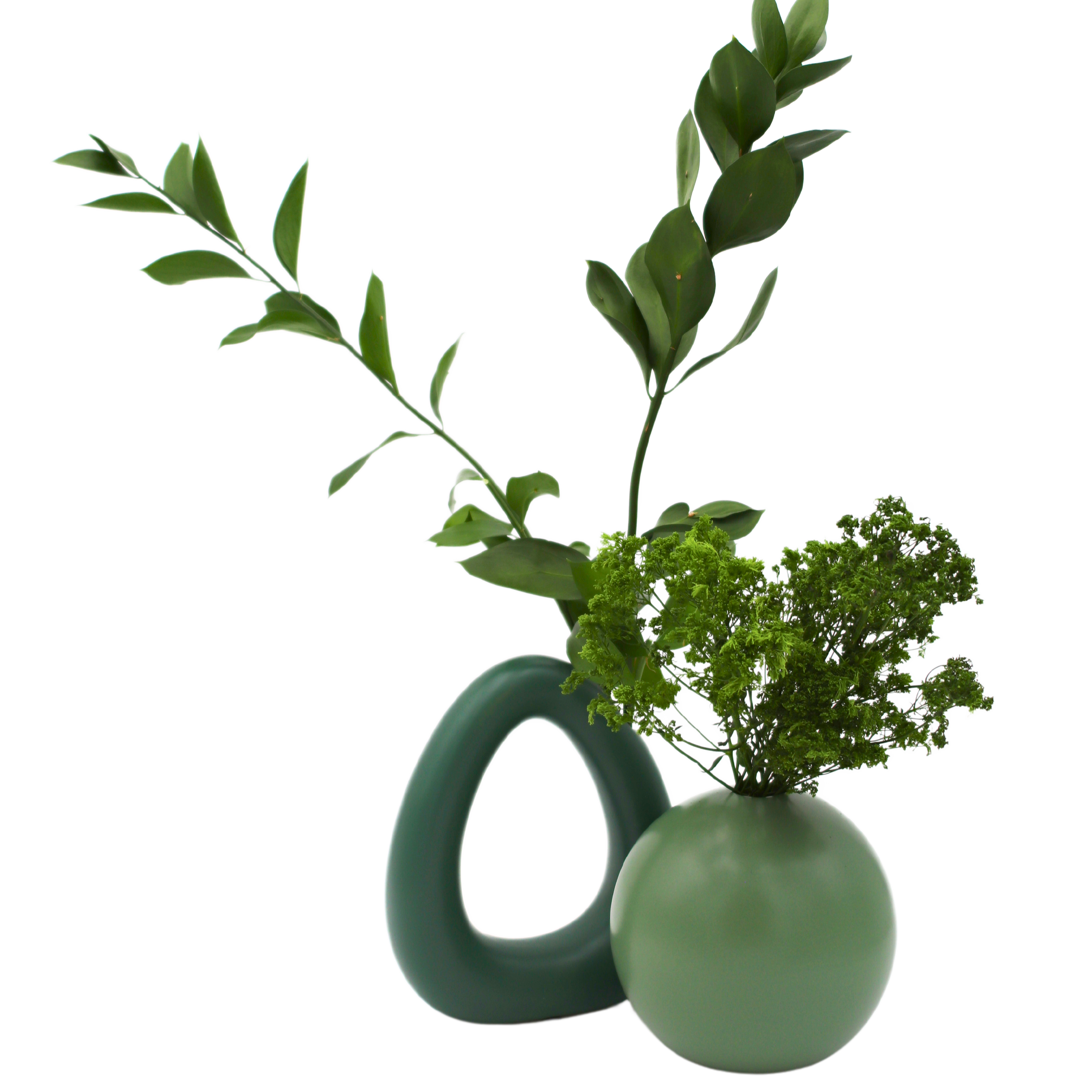 The ensemble is anchored by a matte ceramic vase, its verdant hue echoing Miami's beachfront lounges. Pair it with the Spherule Nouveau Vase, a spherical, minimalist piece that captures the essence of mid-century design.